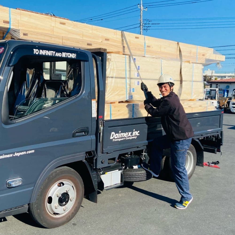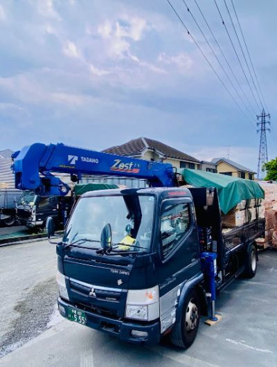 最初は小型トラックで作業をしていただきますが、いずれはクレーン付きトラックで建材等の荷降ろしをする「玉掛け」「小型移動式クレーン」を習得していただきます。資格取得の際には会社が全額負担をいたします。(※社内規定有り)